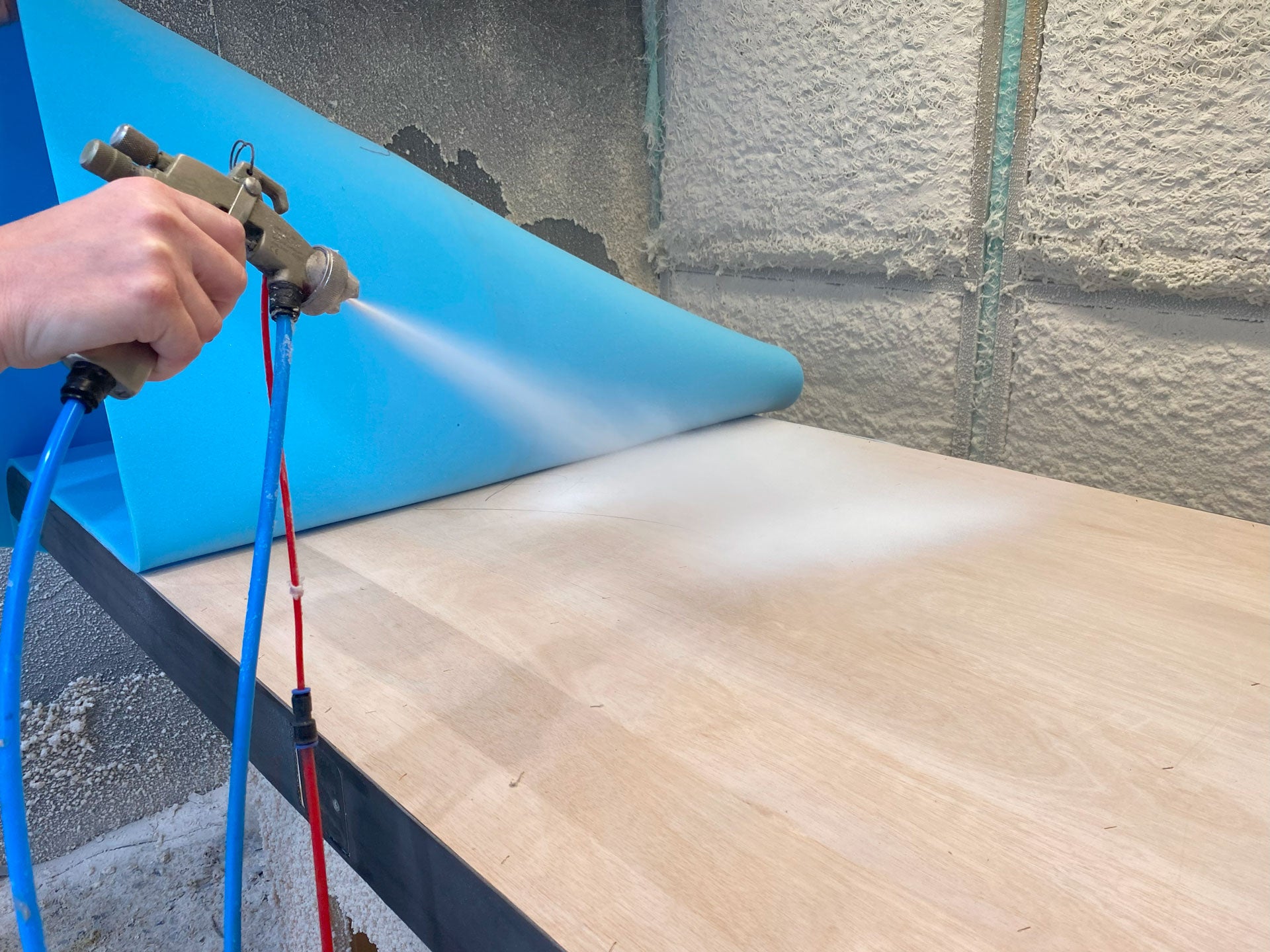 Water-based spray glue isn't an industry standard. We are proud to include it in our manufacturing process because of its health benefits. Being low in VOC content, it is much more environmentally friendly, with fewer regulations and concerns, which makes it perfect for commercial products.